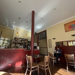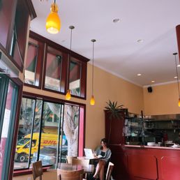 Great coffee shop offering locally made mediterranean style sandwiches with nice outdoor and indoor seating at the crossing of 2 cable car tracks. On request they make the sandwiches as gluten-free plates.